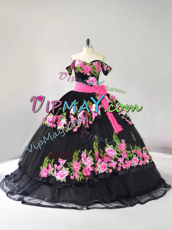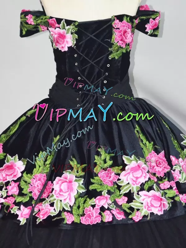 Black Flower Dress Mexican Quinceanera Dresses Pretty