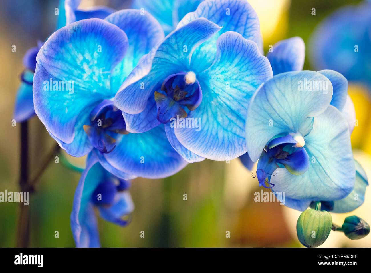 Close Up Blue Orchid Flowers Background Holiday Background With