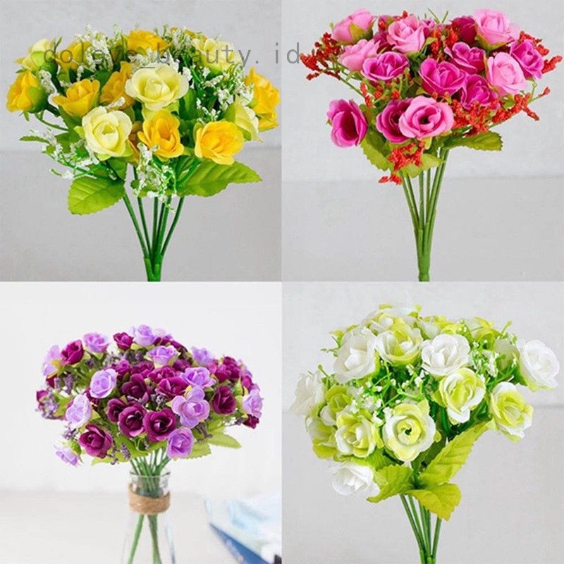 21 Flowers Artificial Fake Plastic Silk Rose Flower Bouquet Bride