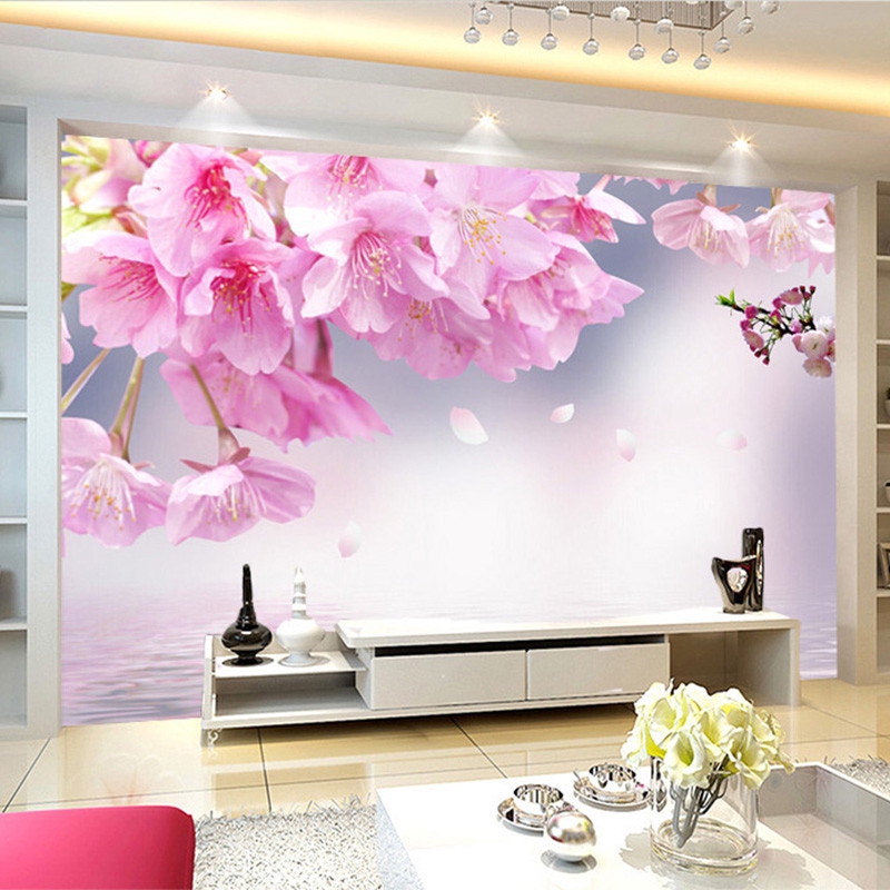 Pink Cherry Blossom Flower 3d Wallpaper Living Room Tv Sofa Wall
