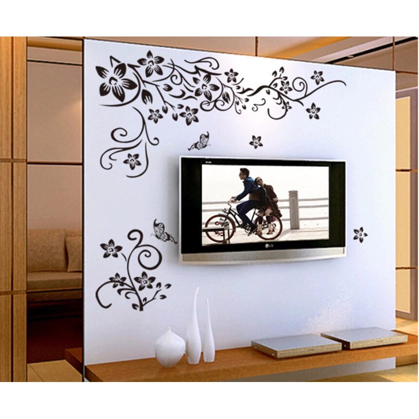 Classical Black Flower Vine Tv Background Wall Decals Decorative
