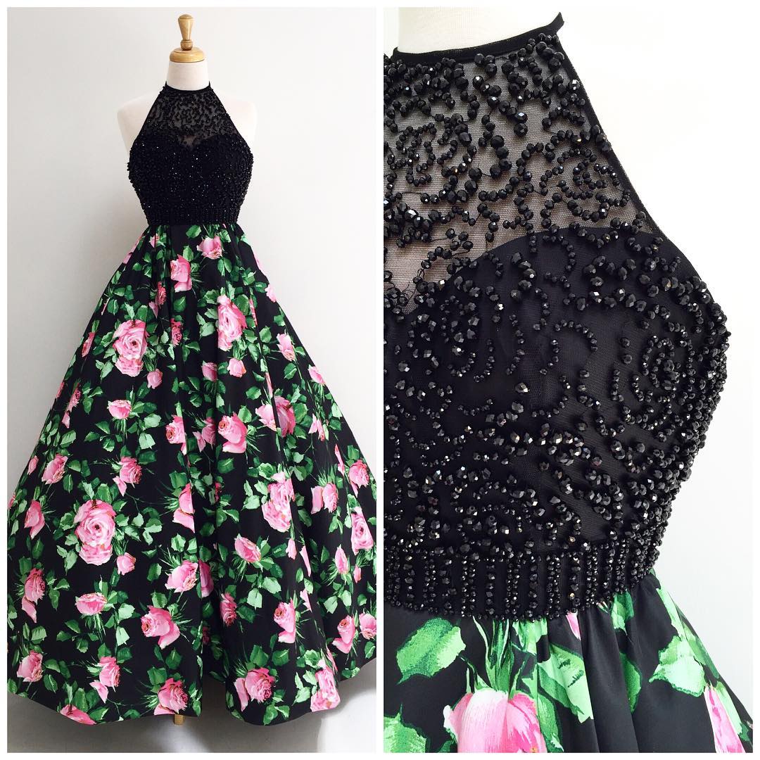 Gorgeous Halter Black Long Floral Prom Dress Prom Dresses Evening