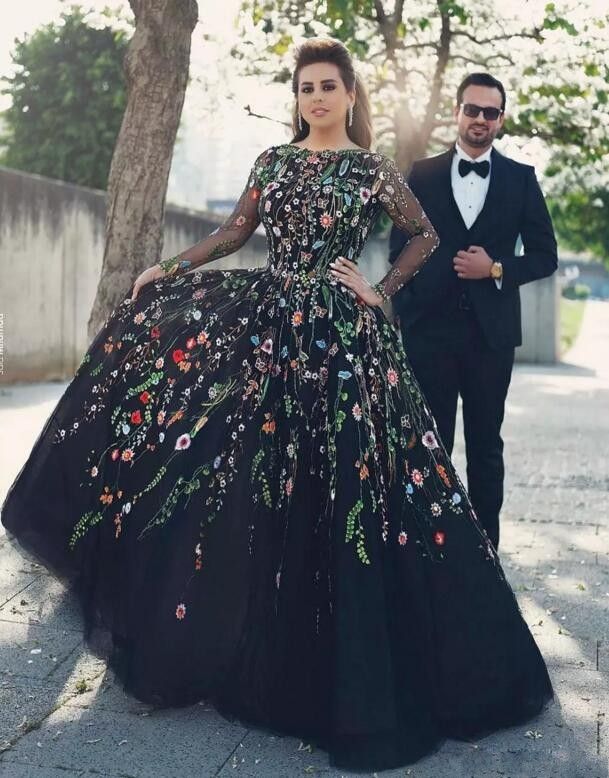 2018 Black Floral Gown Floral Maxi Dress Black Wedding Dress