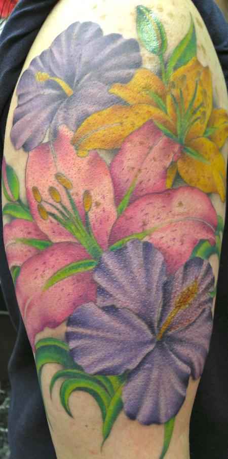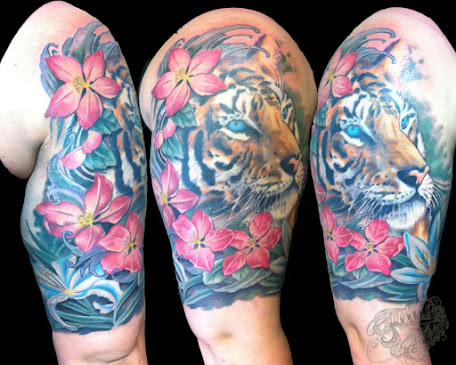Flower Sleeve Tiger Lilly Daisy Iotus Hibiscus Tattoo