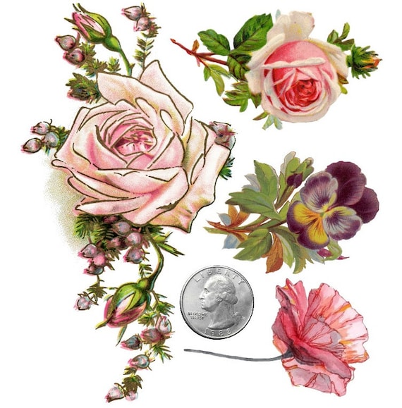 Temporary Tattoo Set Of 4 Vintage Flowers Tattoo Flash Etsy