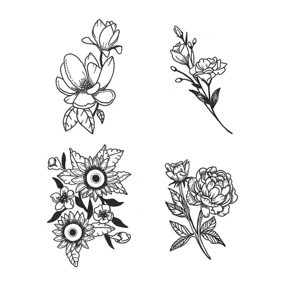 Dainty Flower Set 4 Set Of 4 Temporary Tattoo Flower Etsy