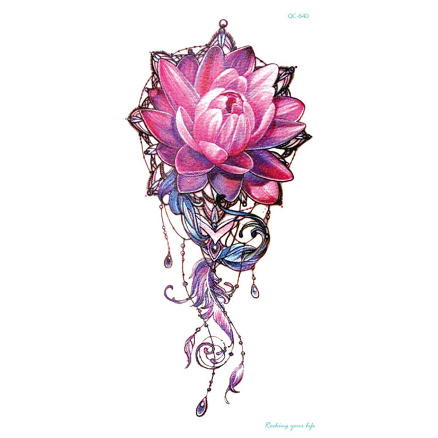 Shellhard Womens Waterproof Temporary Lotus Tattoo Sticker Pink