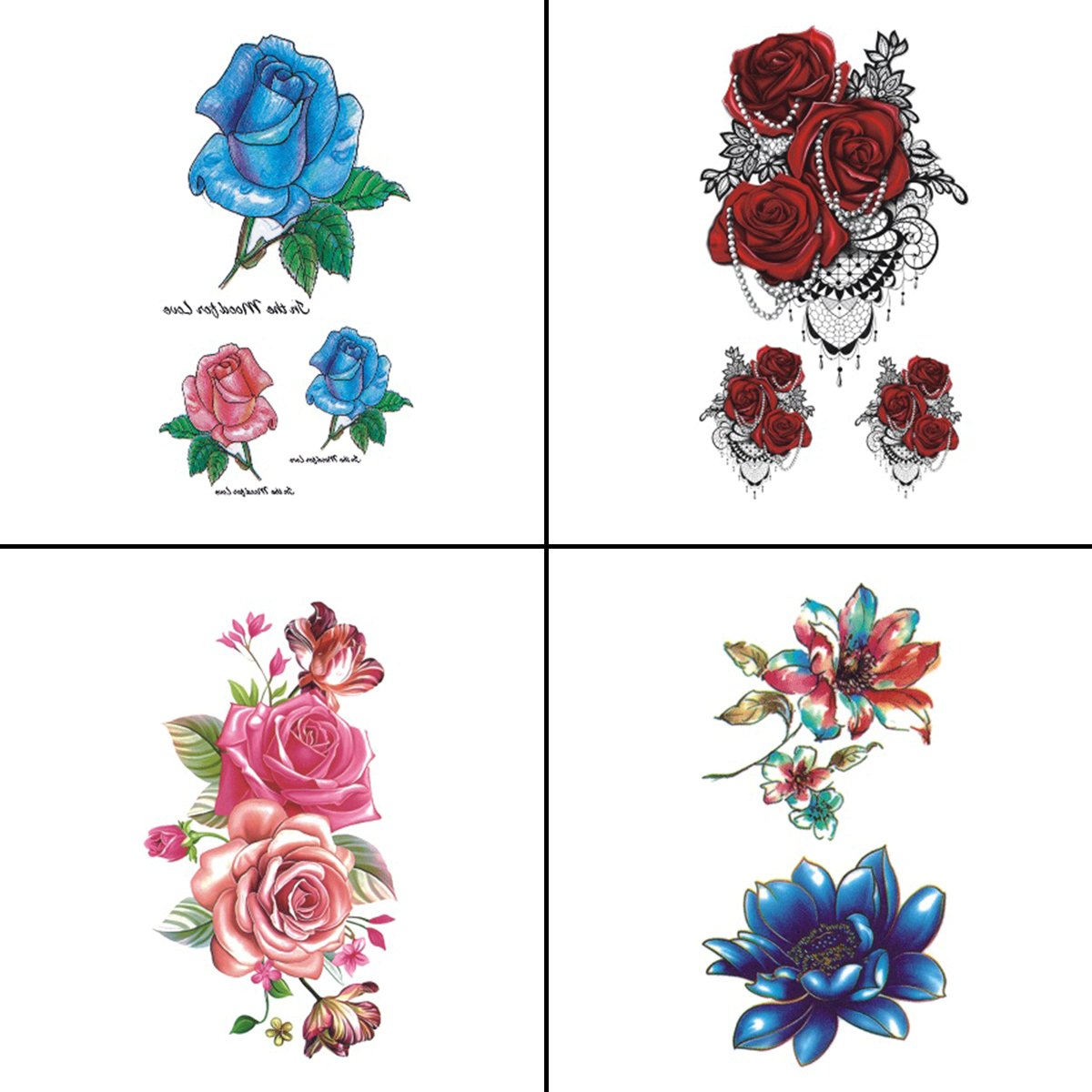 Amazon Com Wyuen 4 Sheets Flower Tattoo Sticker Waterproof
