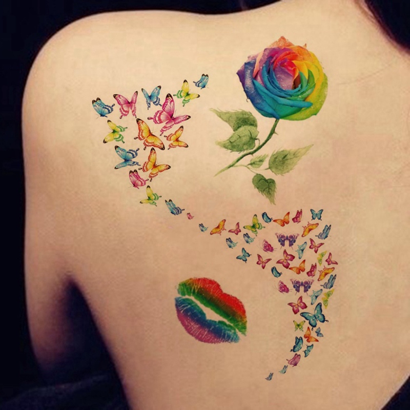 Tattoo Sementara Tahan Air Gambar Kupu Kupu Warna Pelangi Untuk