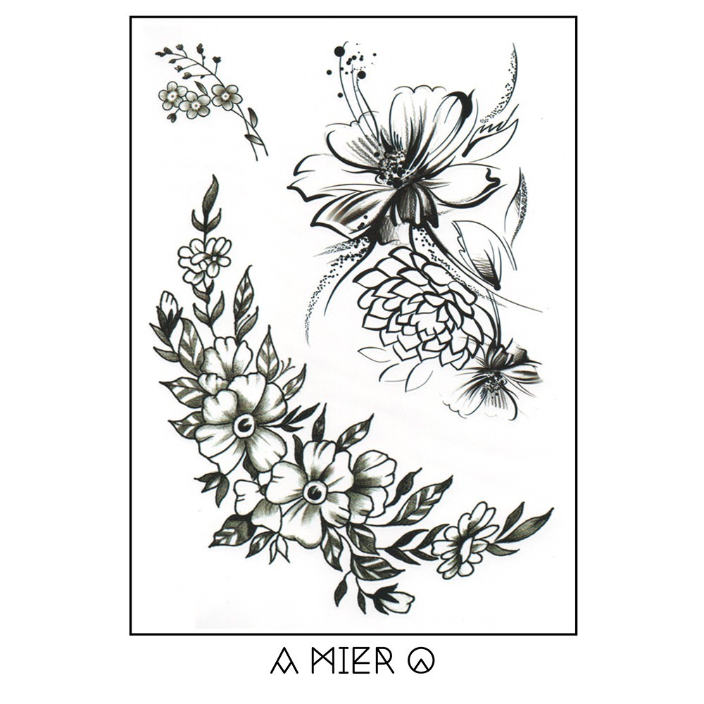 Temporary Tattoo Black Ink Flower Tattoo No 6 Shopee Malaysia