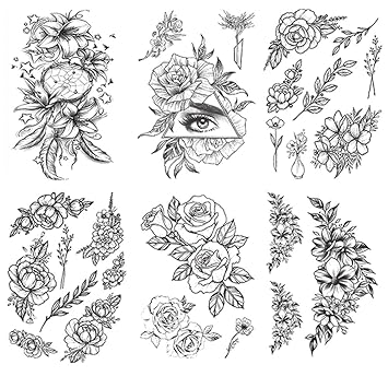 Buy 6 Pieces Tattoo Stickers Temporary Flower Water Proof Tattoo