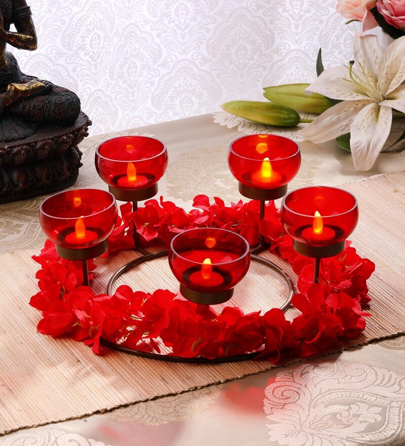 Buy Red Flowers Trendy Table Decoration T Light Holder With 5 Red