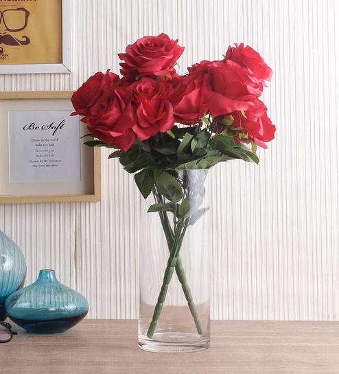Buy Red Fabric Rose Artificial Flower Set Of 2 By Fourwalls