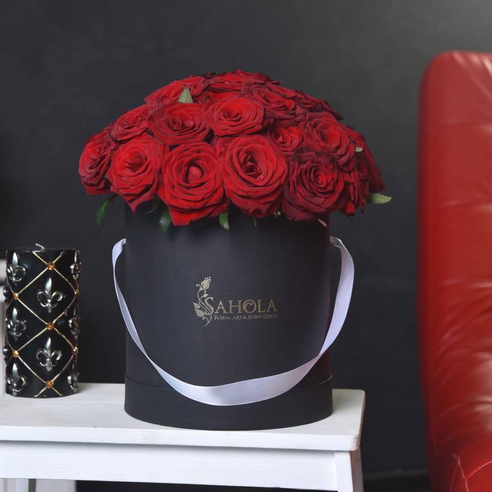 2 Dozen Red Roses In Flower Hat Box By Sahola Flower Fashion Boutique