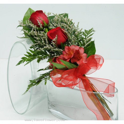 2 Red Roses In A Vase In Levittown Ny Gabriela S Garden Florist