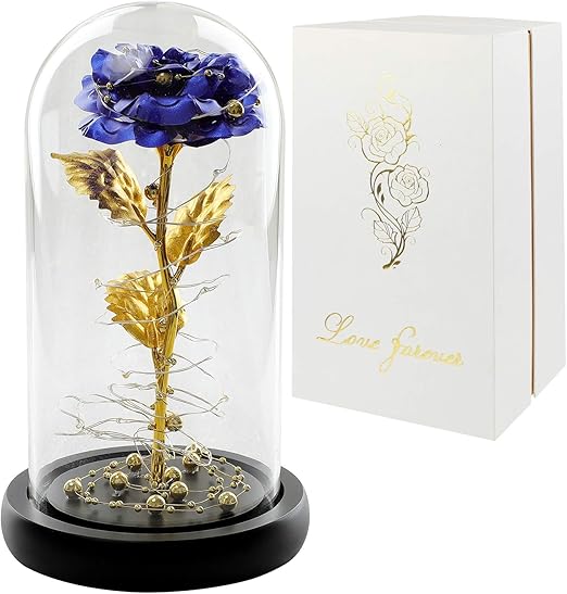 Amazon Com Women Glass Rose Dome Blue Led Rose Flower In Glass