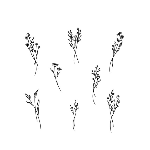 8 Pen Drawn Flowers Clip Art Black White Clipart Digital Clip