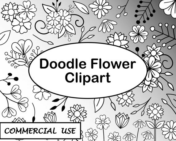 Doodle Flowers Light Clipart Graphics And Printable Digital Etsy