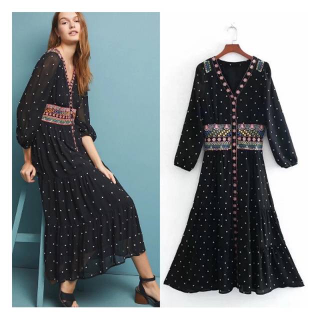 Jual Flower Embroidered Bohemian Dress Black Jakarta Pusat