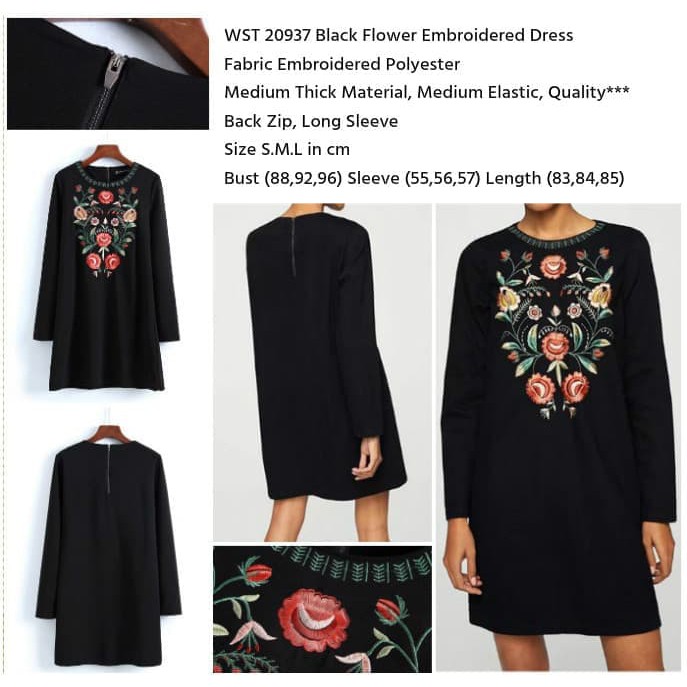 Lucu Black Flower Embroidered Dress Size S M L 20937 Murah