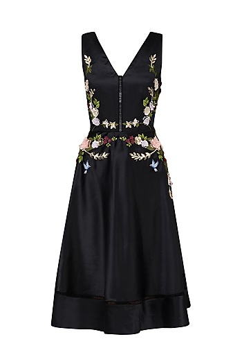 Black Floral Embroidered Dress By Anecdotes The Secret Label