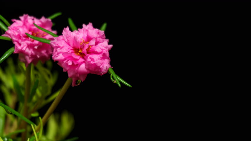 Time Lapse Of Pink Portulaca Flower Blooming On Black Background