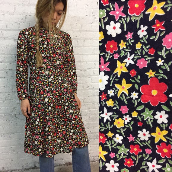 Vintage Floral Print Dress Long Sleeved Flower Child Dress Etsy